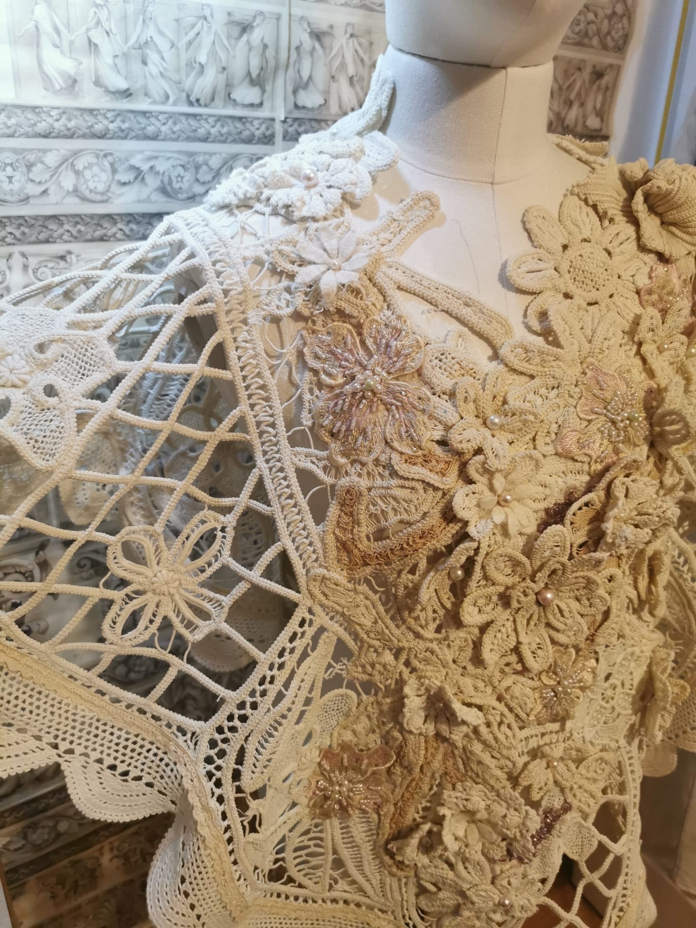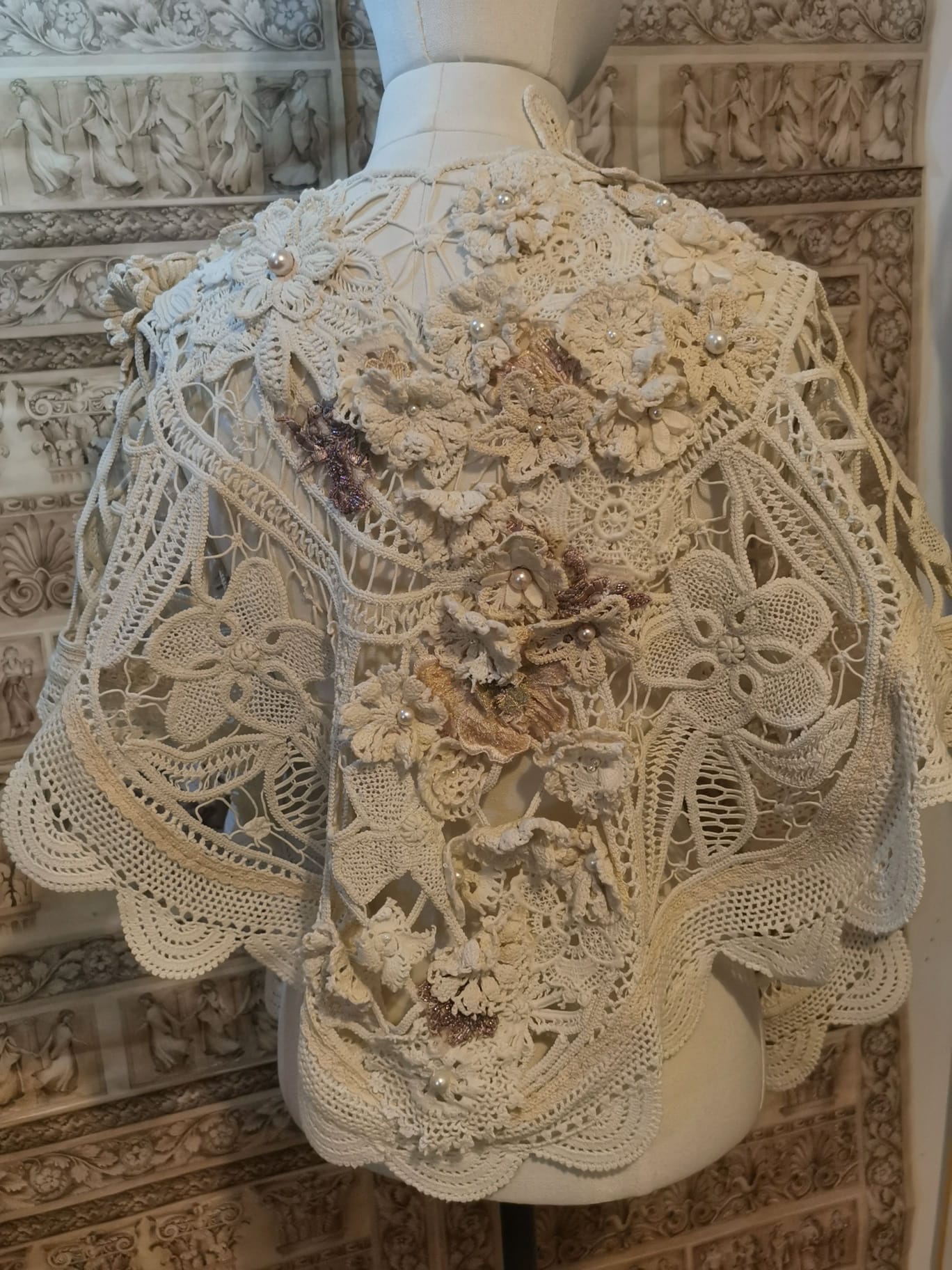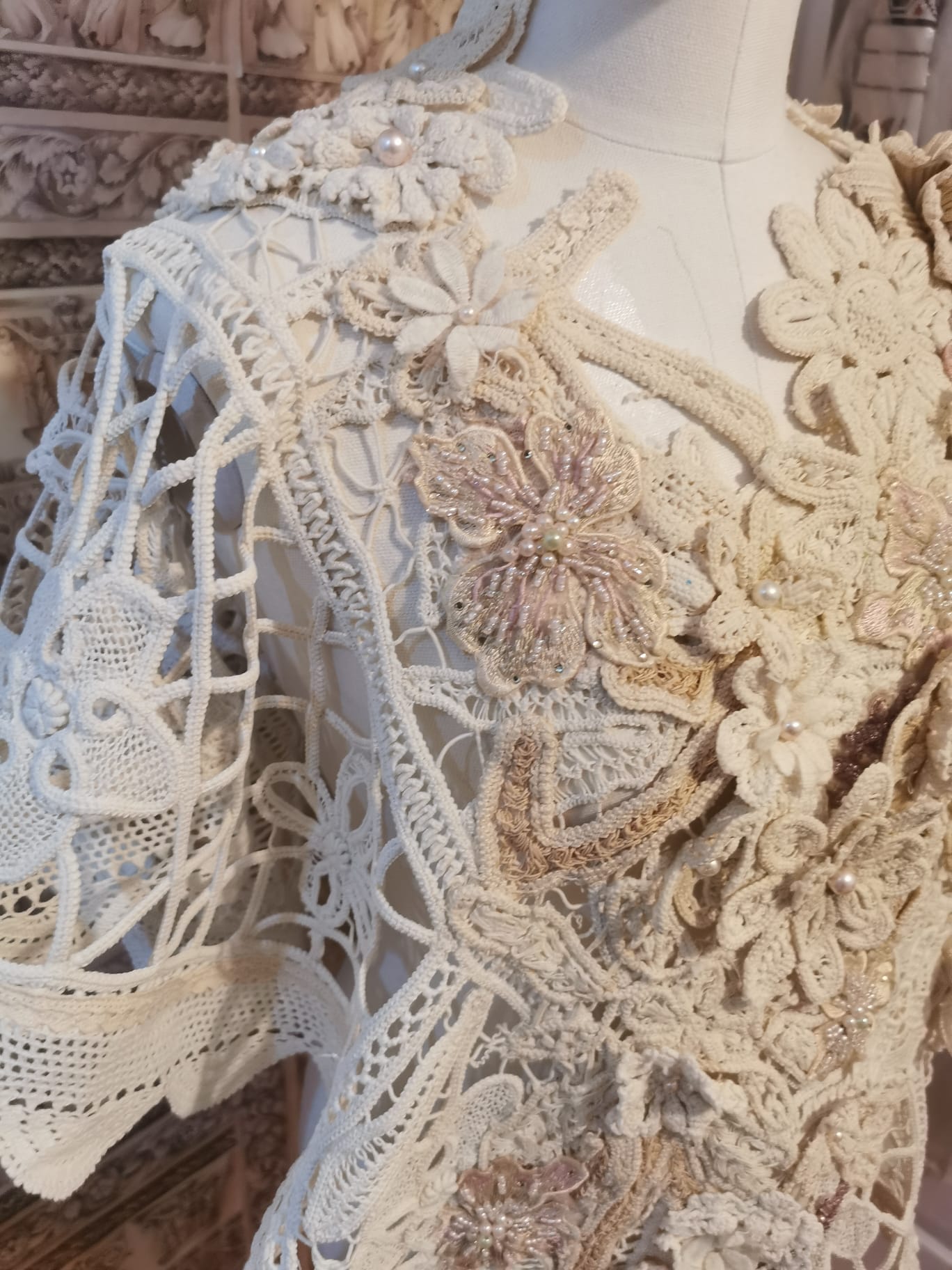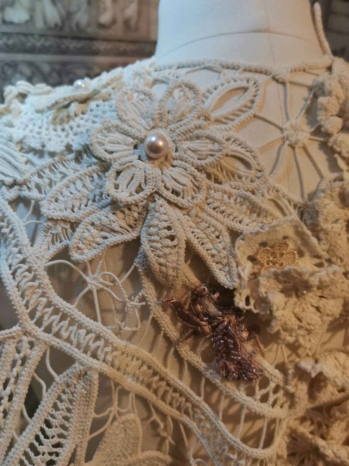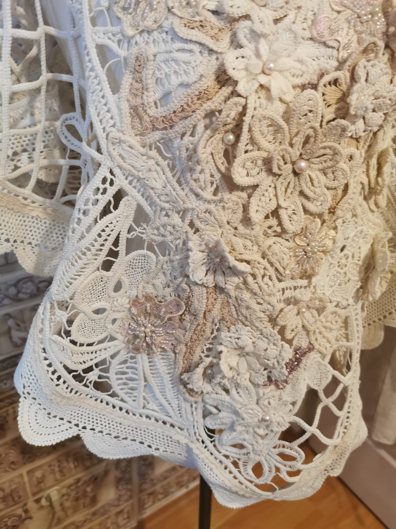 pancho din macrame lab cu perle